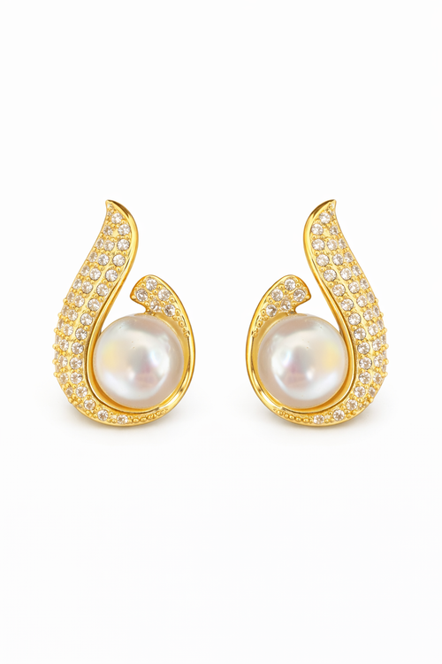 Boucles d’Oreilles Dorées Goutte d’Eau & Perle